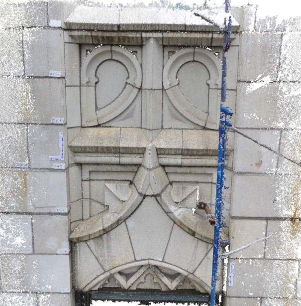 Restoration of historic decorative terra cotta, cast stone, or natural stone often requires extensive replacement of individual units. Erecting scaffolding for hands-on access to measure and remove existing units adds significant cost to project budgets.