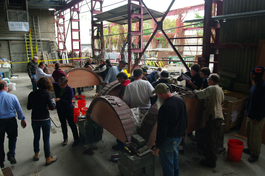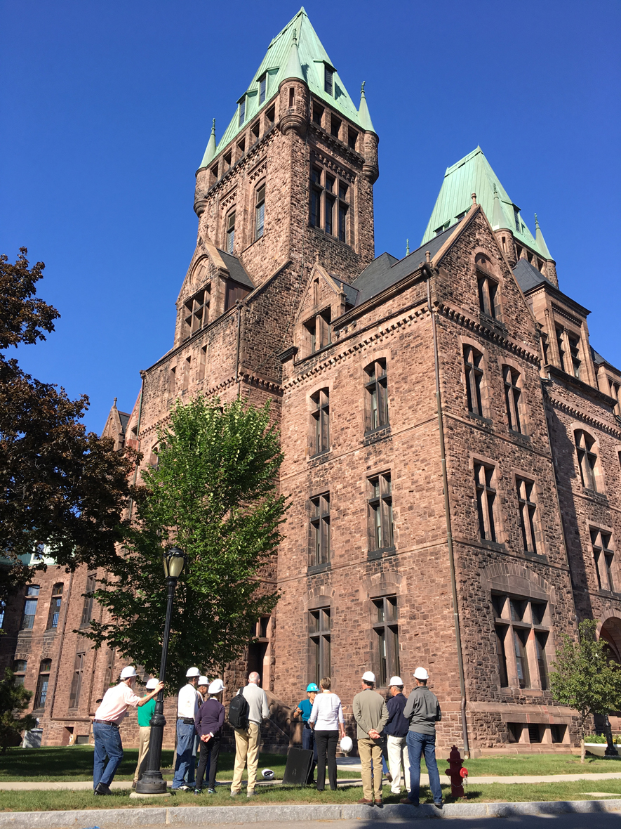 (Coordinated by Patrick Capruso): Quarried in Orleans County near the town for which it was named, Medina sandstone was prized by builders and architects for its inherent strength and beauty. Fourteen attendees joined the all-day, Medina Sandstone Field Session as part of APT 2018. The field session included a visit to the Medina Sandstone Hall of Fame where the Medina Sandstone Society offered programming on the stone’s mineral composition, an in-depth look at life in and around the quarries, and the socioeconomic impact that the quarrying industry had on the region. Following lunch in Medina, the trolley was bound for Buffalo for site visits at several ecclesiastic landmarks and the Richardson Olmsted Campus. Mike Lennon, of Flynn Battaglia Architects, provided insight into preservation efforts at St. Paul’s Episcopal Cathedral and First Presbyterian Church. At St. Louis RC Church, the Church historian and a member of the Board of Trustees highlighted the parish’s past restoration campaigns. Finally, our docent at the Richardson Olmsted Campus gave a whirlwind hardhat tour of the site’s exterior façades and a glimpse of an interior space slated for redevelopment.