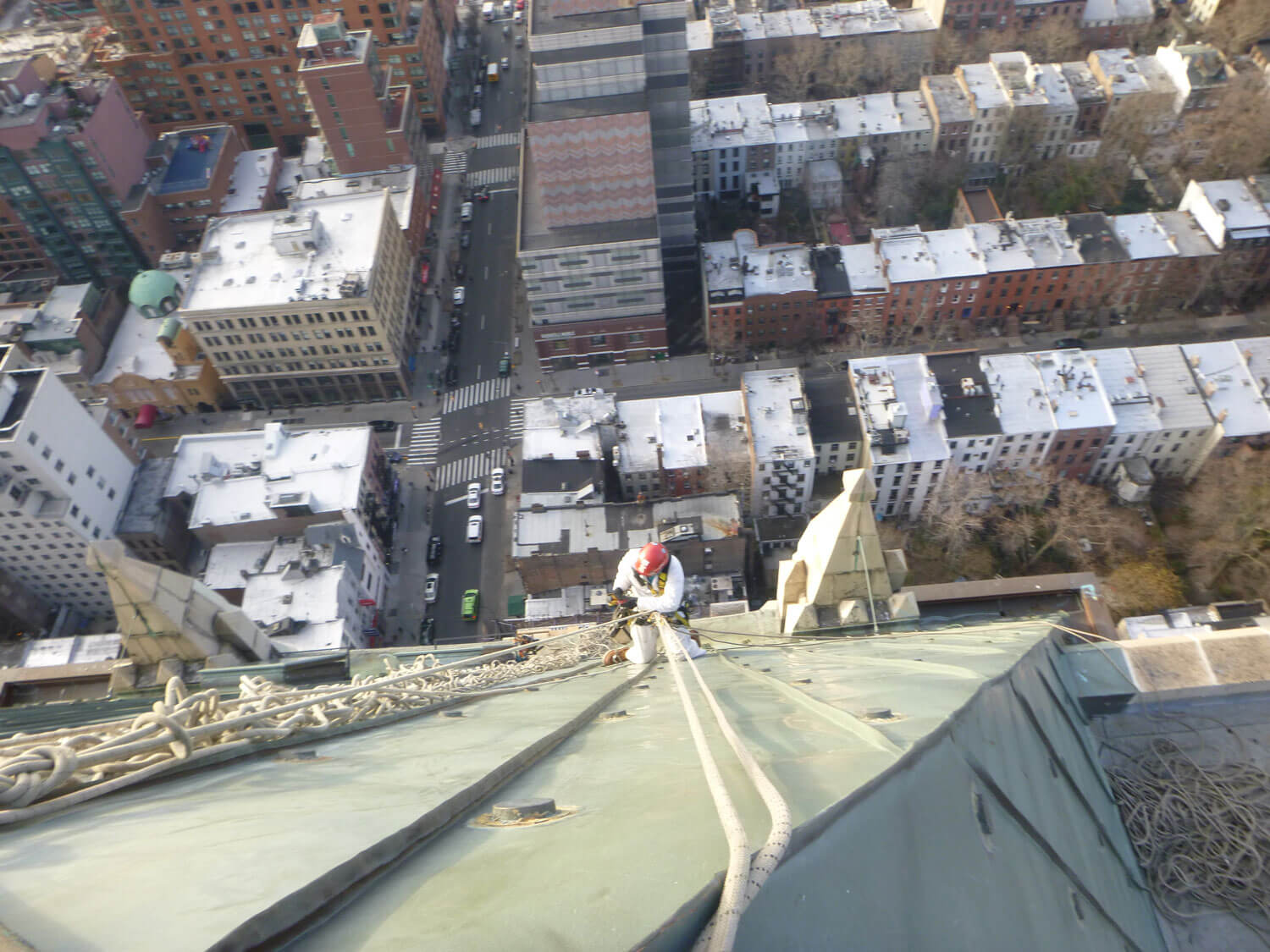 Vertical Access was retained by FS Project Management to perform a hands-on investigation of the four exterior façades from grade to the top of the building at the penthouse level to assist Howard L. Zimmerman Architects (HLZA) with the Local Law inspection of the building and with preparation of repair recommendations and documents.