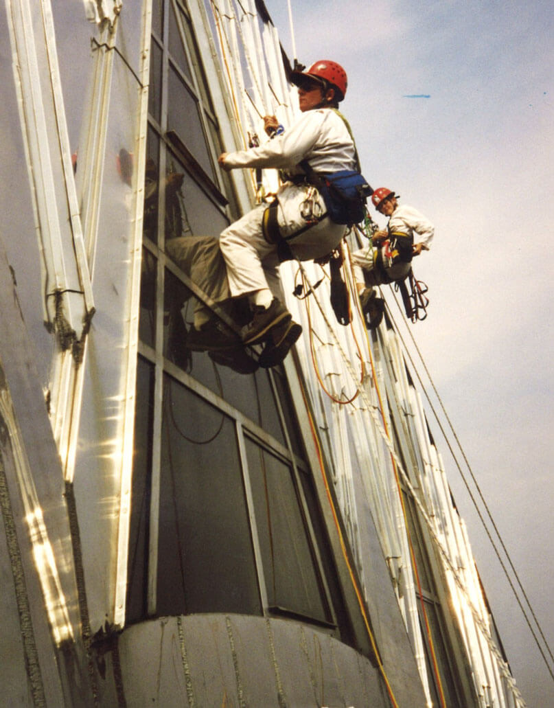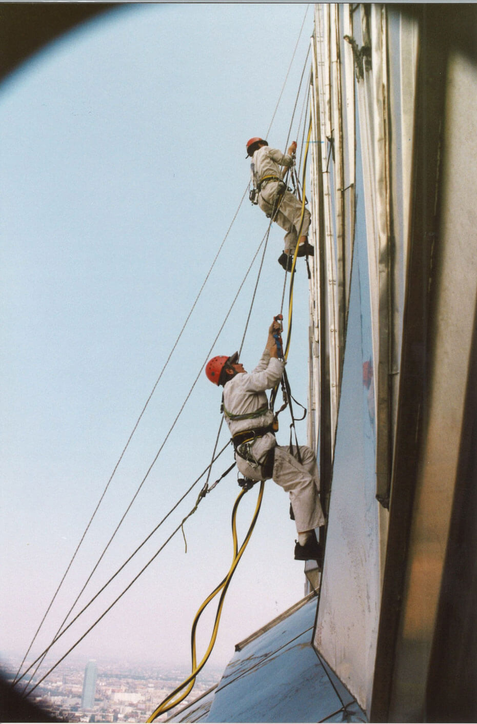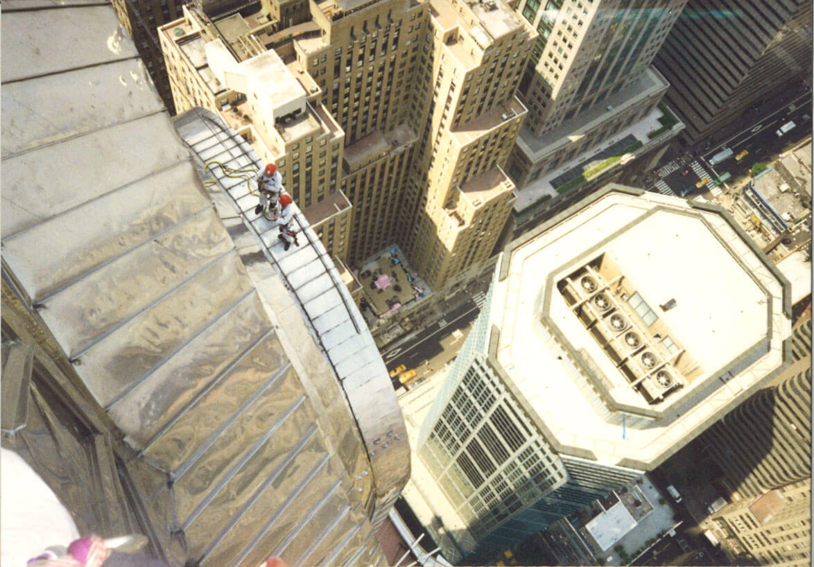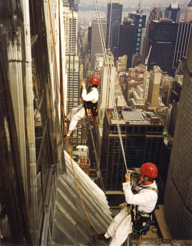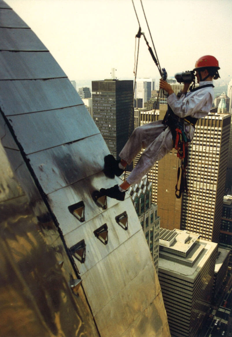 - Hands-on inspection of the stainless steel spire was completed to determine locations of water infiltration. Live-feed video was used to communicate observations made by Vertical Access technicians with the client, inside the spire.