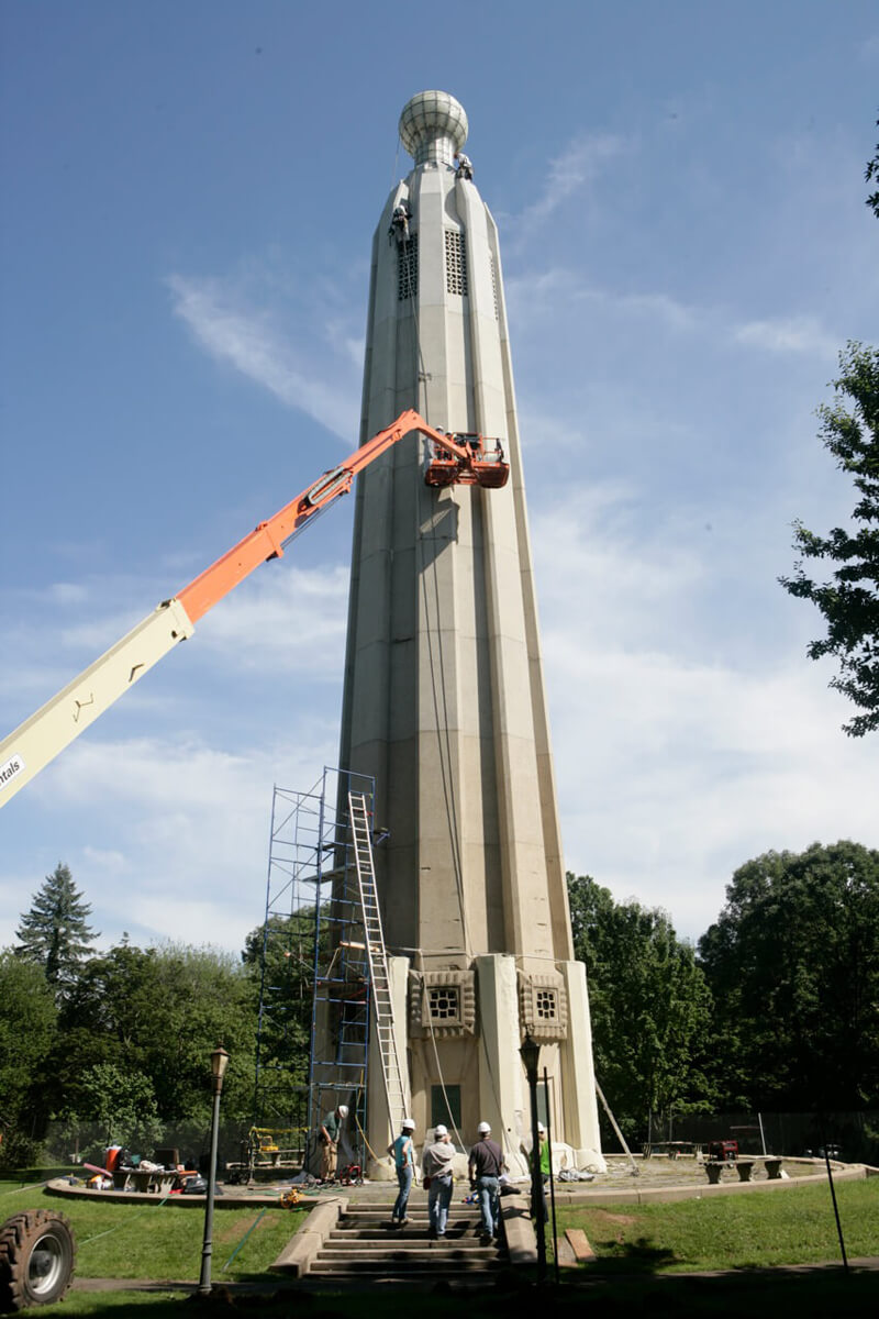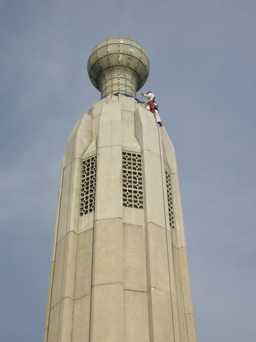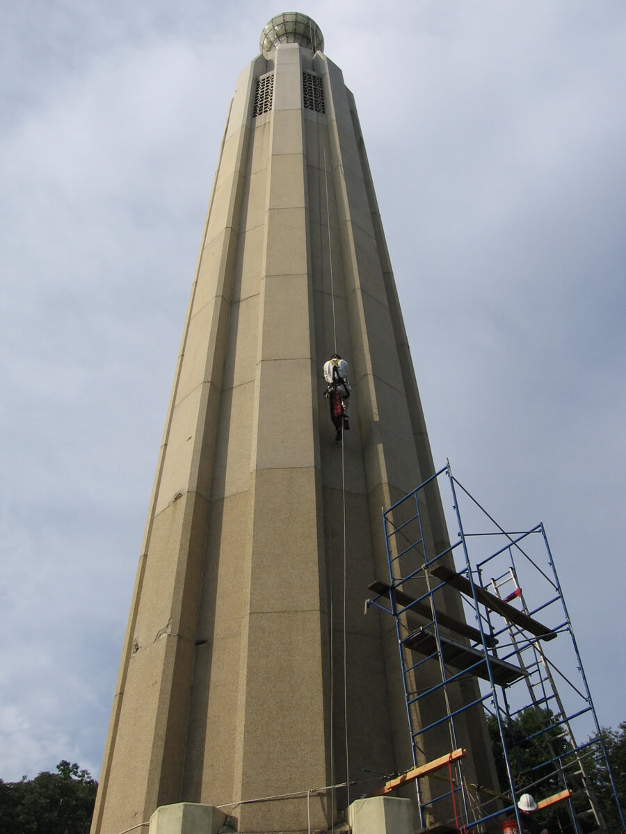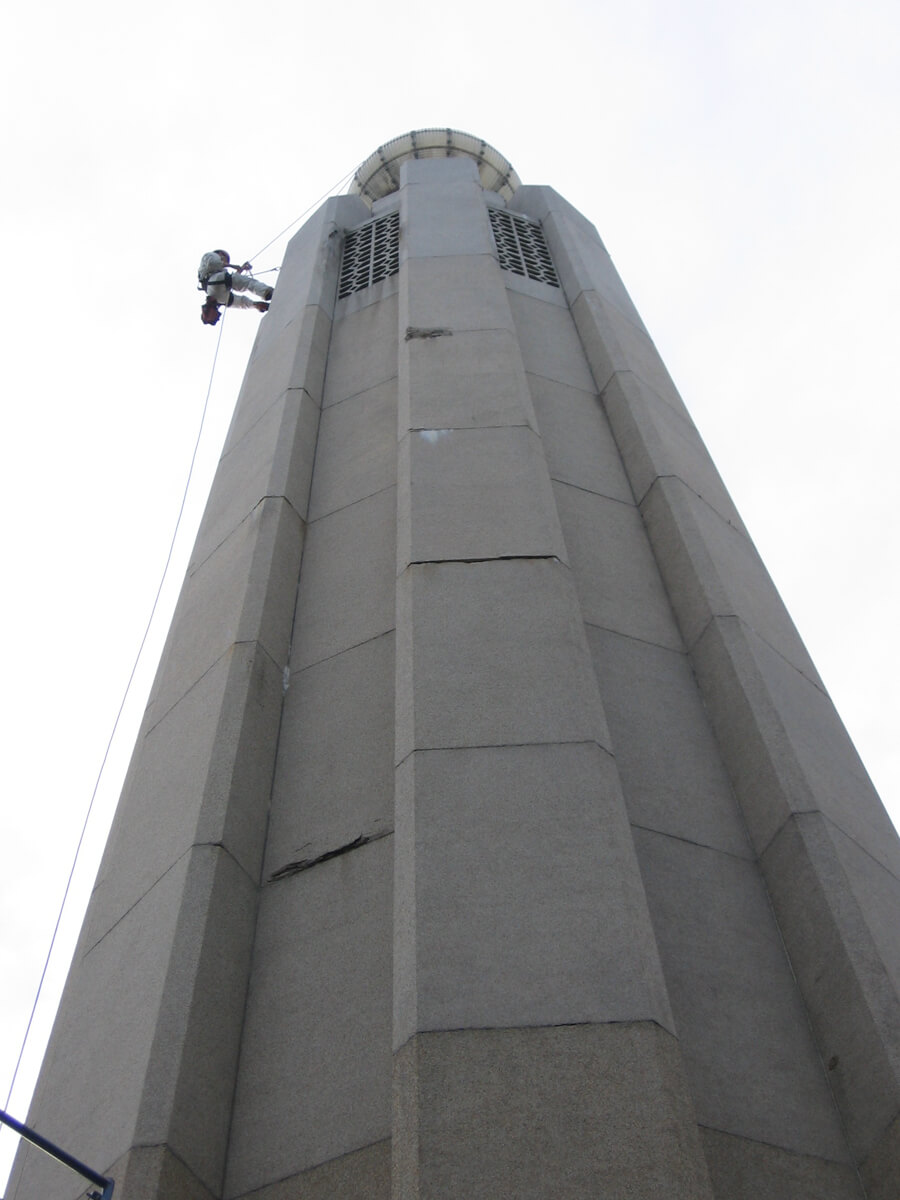 - Performed a conditions survey of the pre-cast concrete panels at the upper portions of the tower, two full-height facets and exterior of the glass light bulb in 2009.