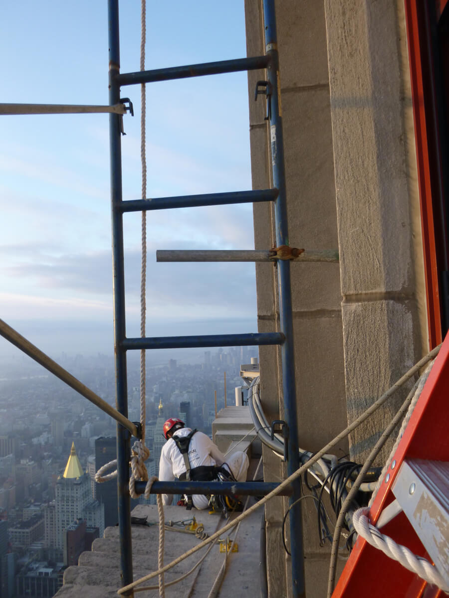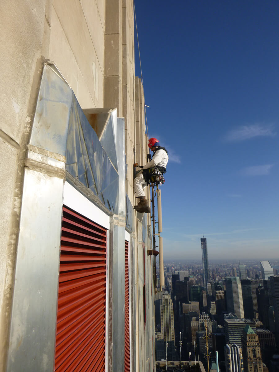 Vertical Access was retained by Jones Lang LaSalle to assist with water testing of two replacement louvers and adjacent masonry at the 83rd floor of the Empire State Building, in order to determine the water resistance of recently-installed mock-up wall louvers and the water repellence of existing façade construction adjacent to the louvers. The scope of work included performing several spray tests on the east façade in accordance with a water test designed by Rainer Gerbatsch of Commercial Roofing Analysts, Inc.