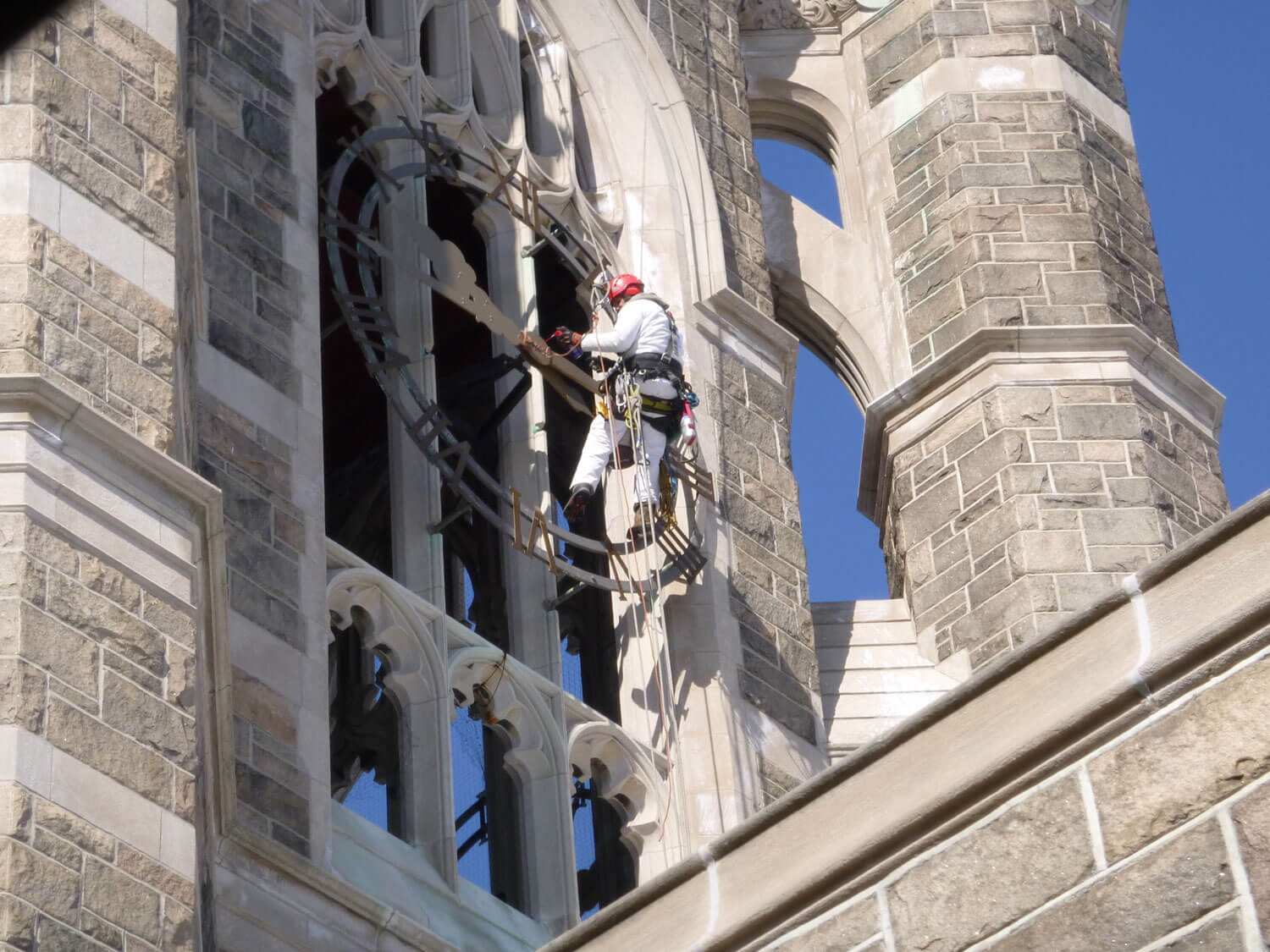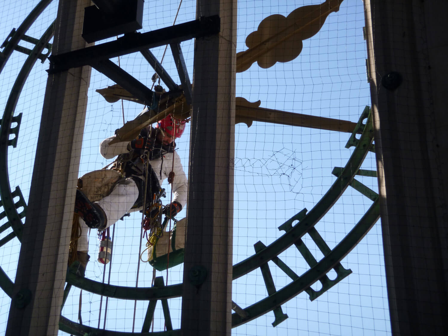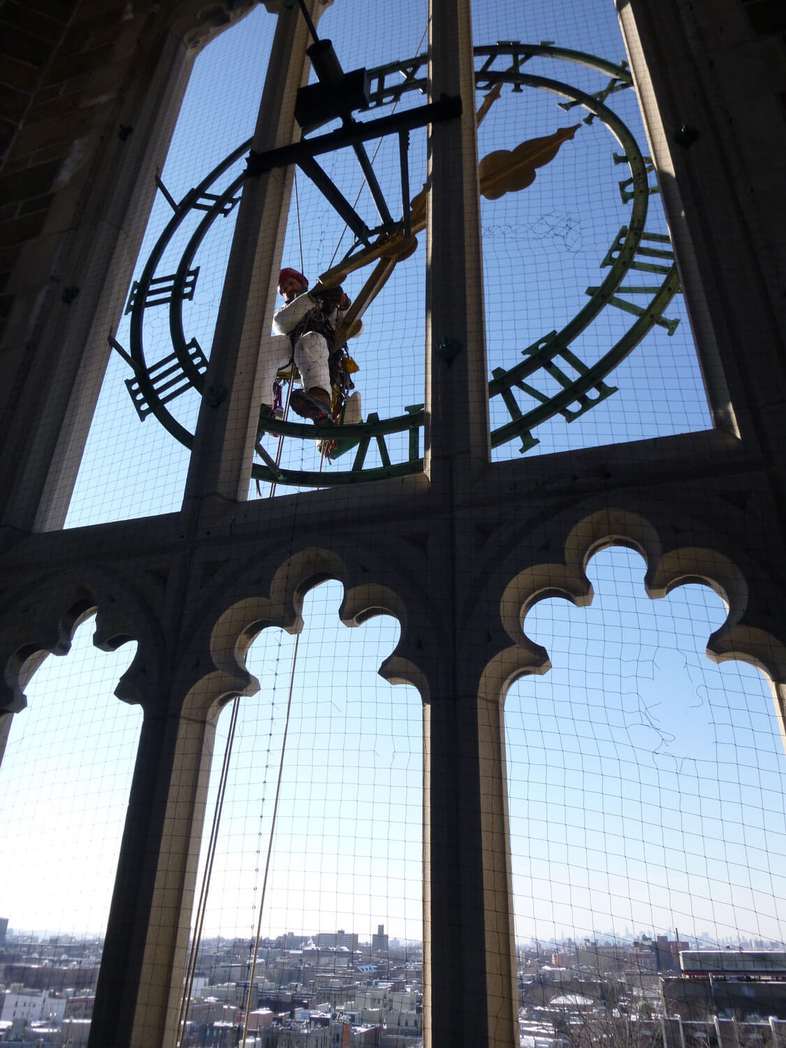 - Used Industrial Rope Access to allow a technician hands-on access to clock hands and gear boxes. This access approach allowed work to take place without disrupting student and staff access to campus buildings and without the construction of costly scaffolding.
