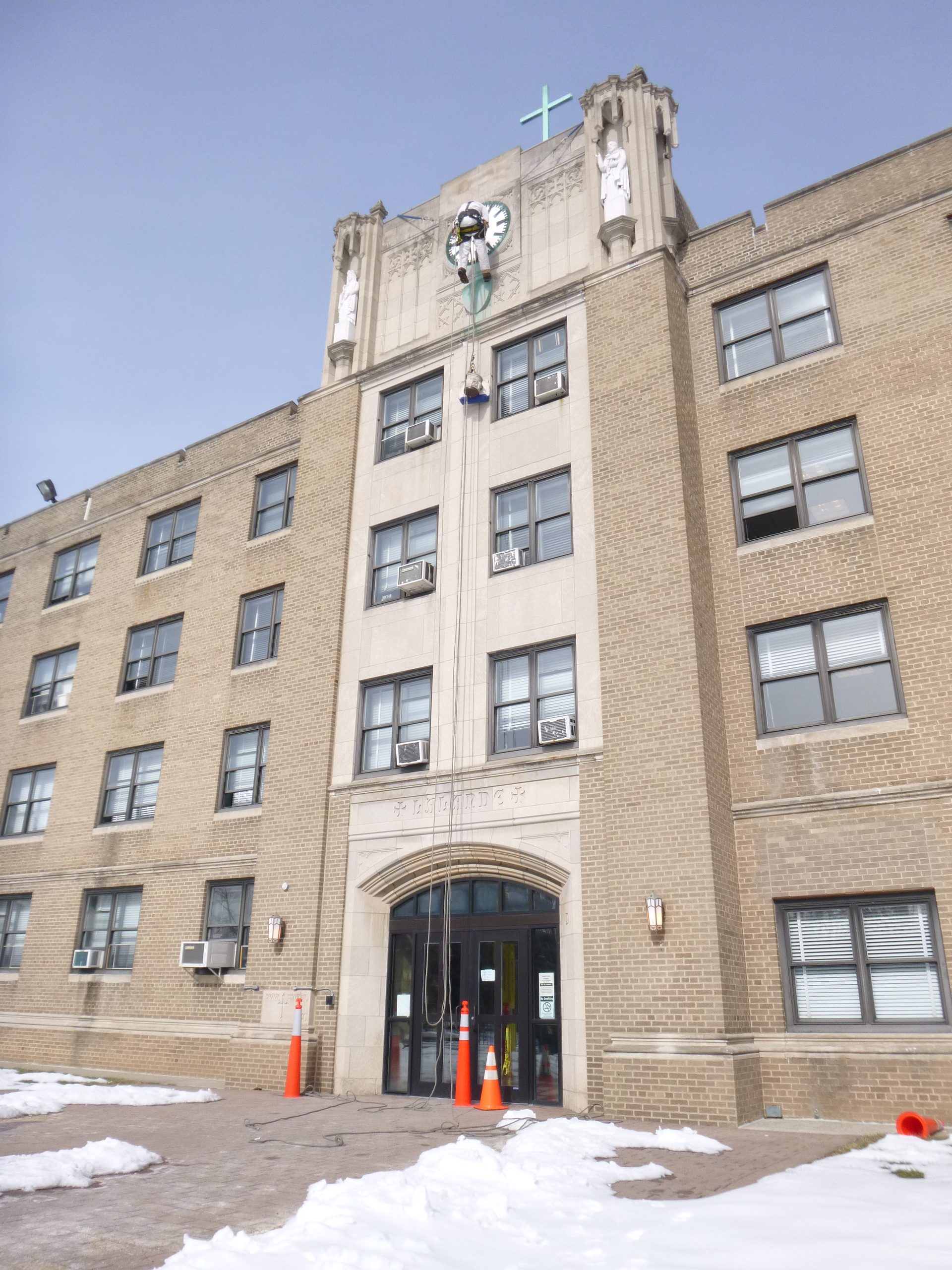Vertical Access was retained by Structure Tone, Inc. to assist with the restoration of tower clocks on two buildings on Fordham University’s Rose Hill campus. VA worked with the Verdin Company to remove the clock hands and reinstall them after restoration, and to install new gear boxes. VA documented each step of the equipment removal and reinstallation using digital still photography.