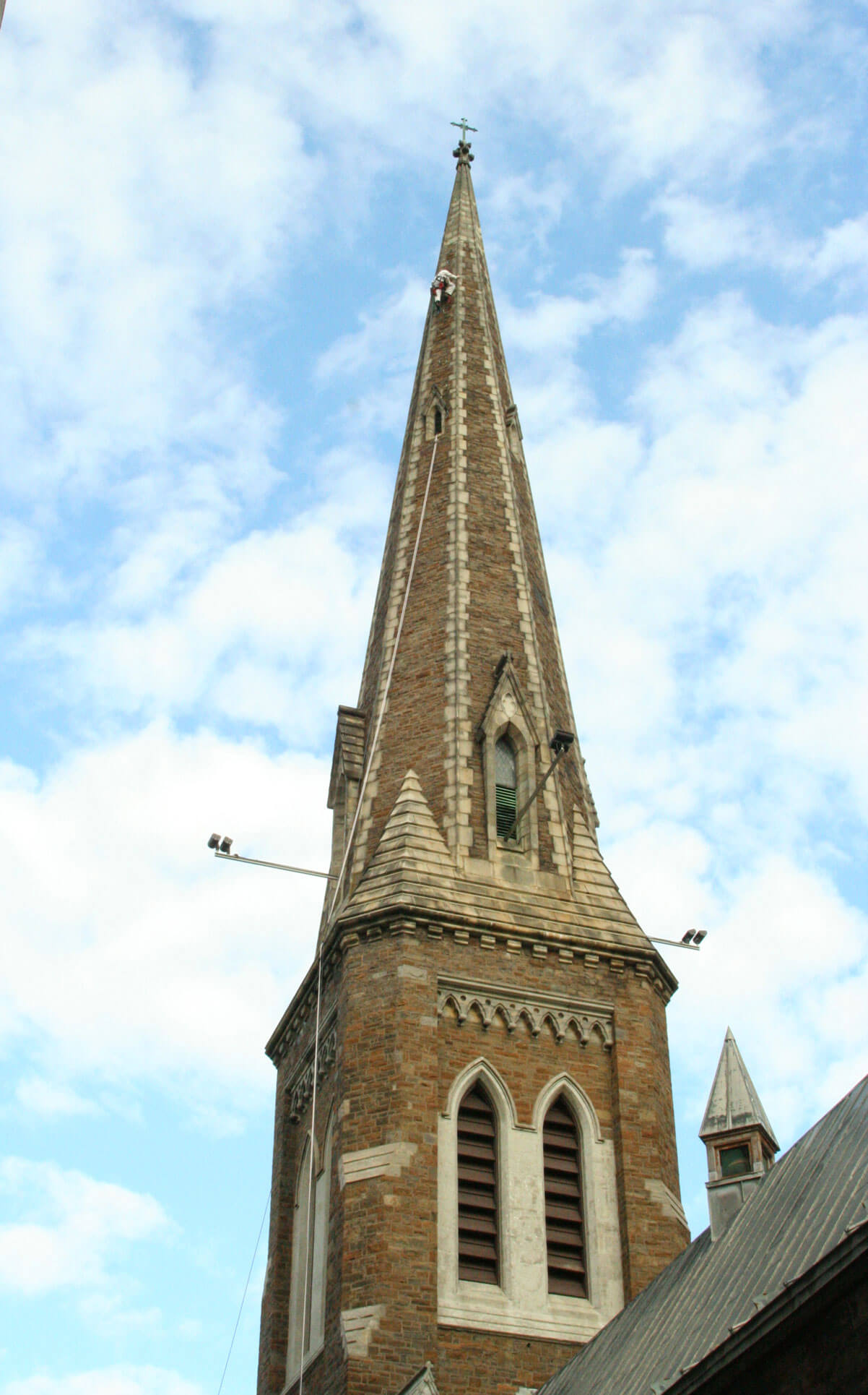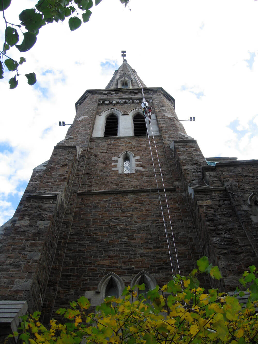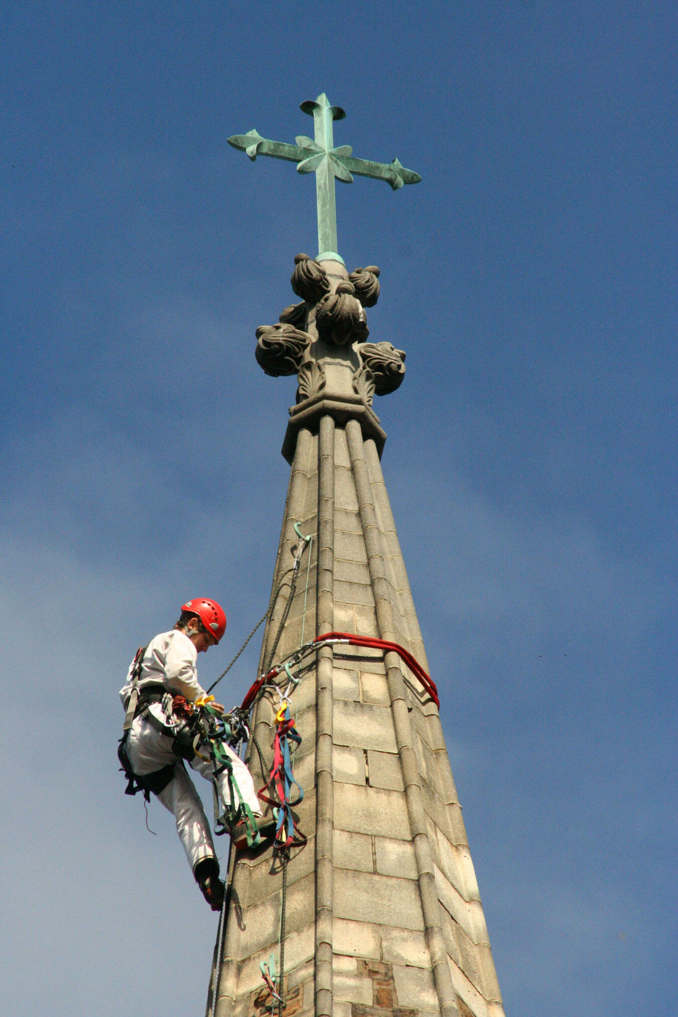 - Gained access to finial of spire by aid leading the top 40 feet above the highest spire opening.