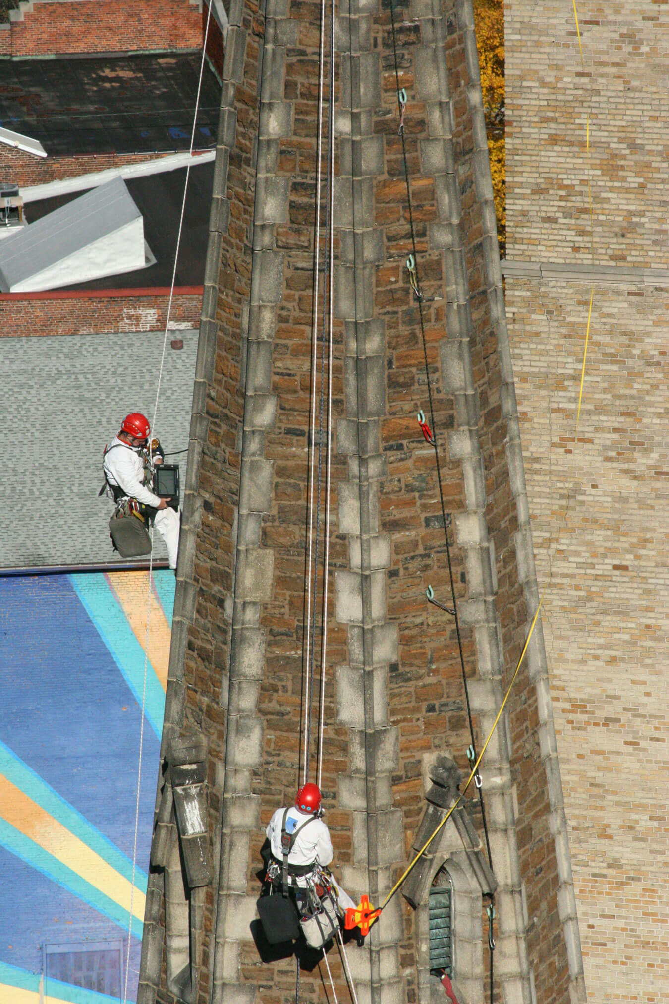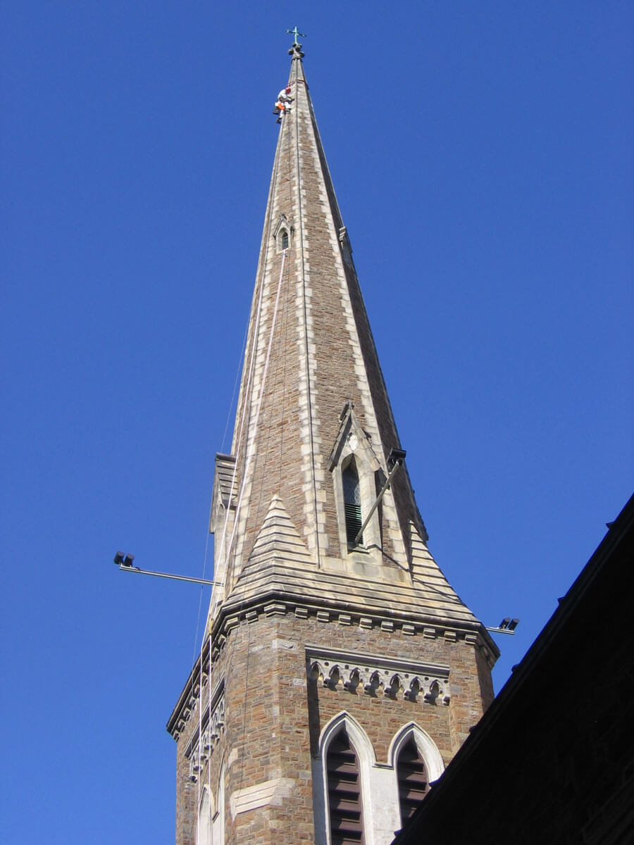 - Surveyed and documented existing conditions of exterior masonry and window openings at all areas of tower and spire.