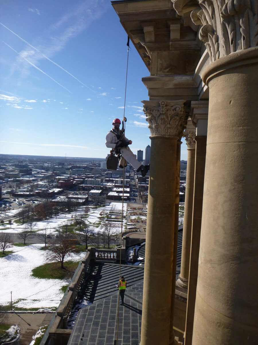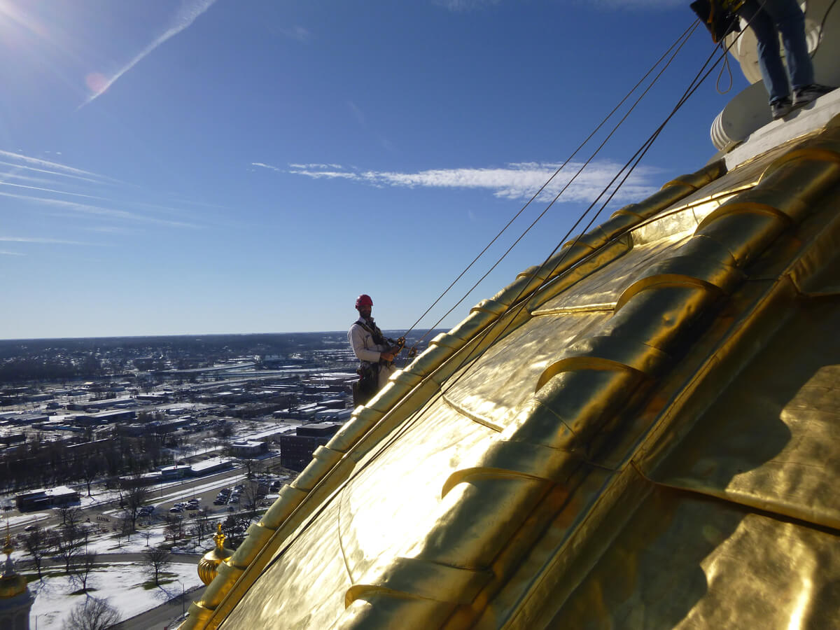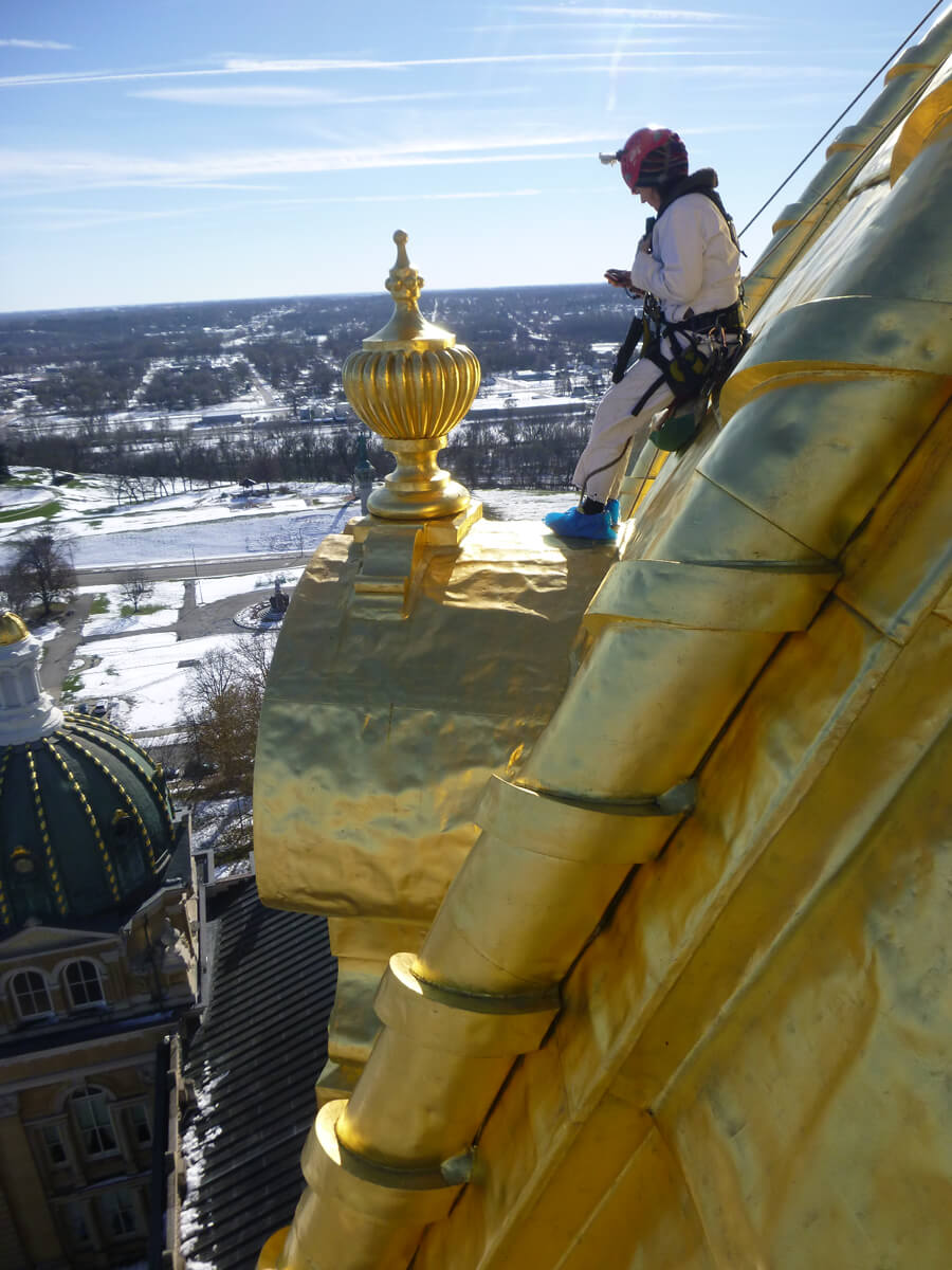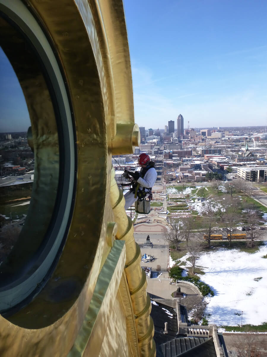 Vertical Access was retained by Simpson Gumpertz & Heger, Inc. to assist with an exterior and interior survey of the main dome of the Iowa State Capitol building. An evaluation and repair design study was commissioned by the State of Iowa Department of Administrative Services to document and assess the existing condition of the dome and lantern and to determine likely causes of water infiltration.
