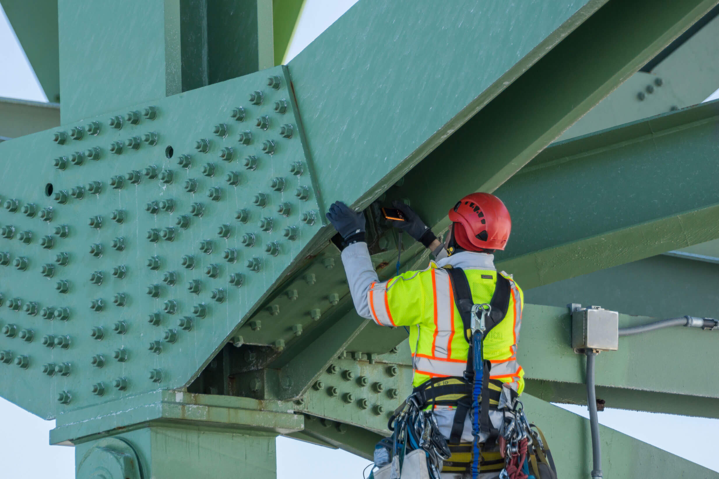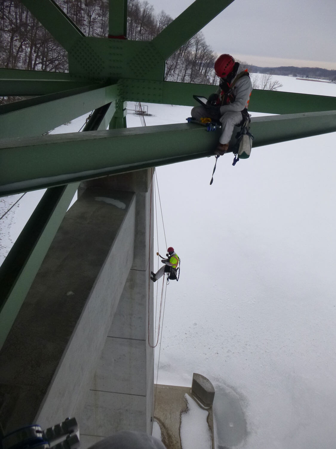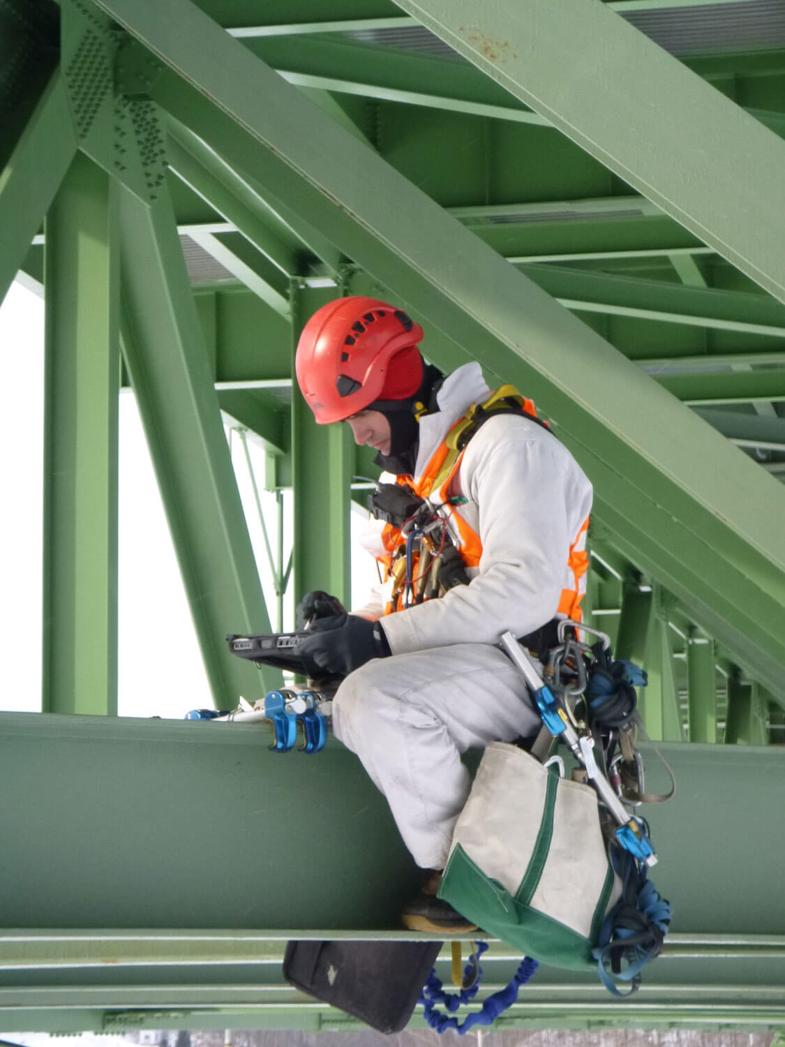 - Combined industrial rope access and conventional fall protection rigging solutions to provide 100% hands-on inspection of structural under-deck members at all areas inaccessible by UBIU.