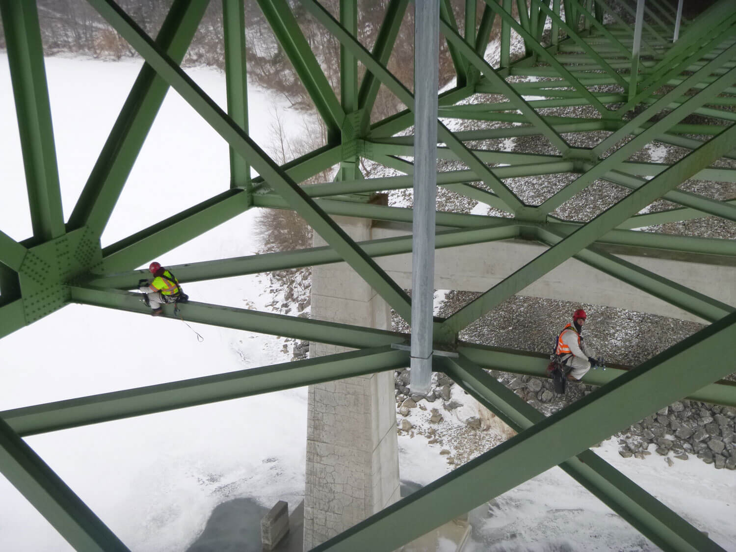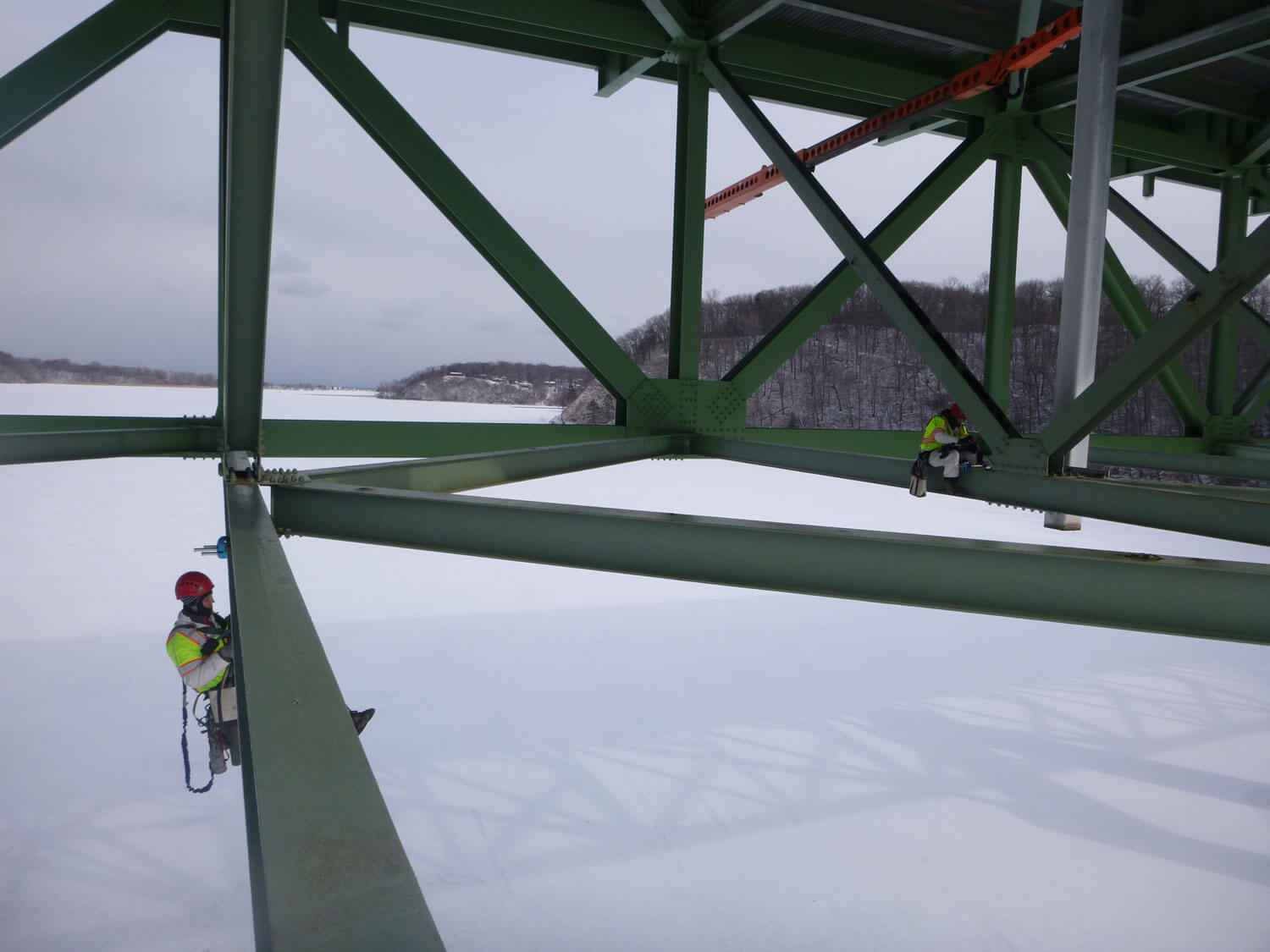 - Performed hands-on inspection of lower lateral members, lower part of the sway frames, wind locks and concrete piers using a combination of industrial rope access and under-bridge units.