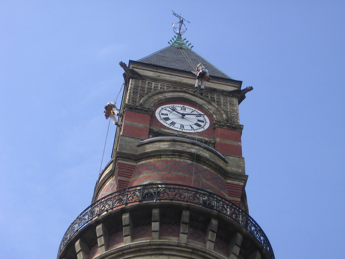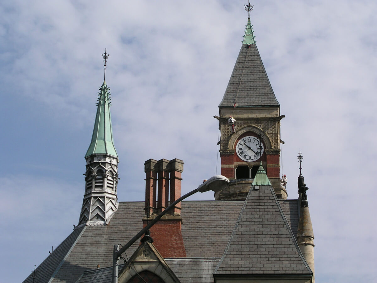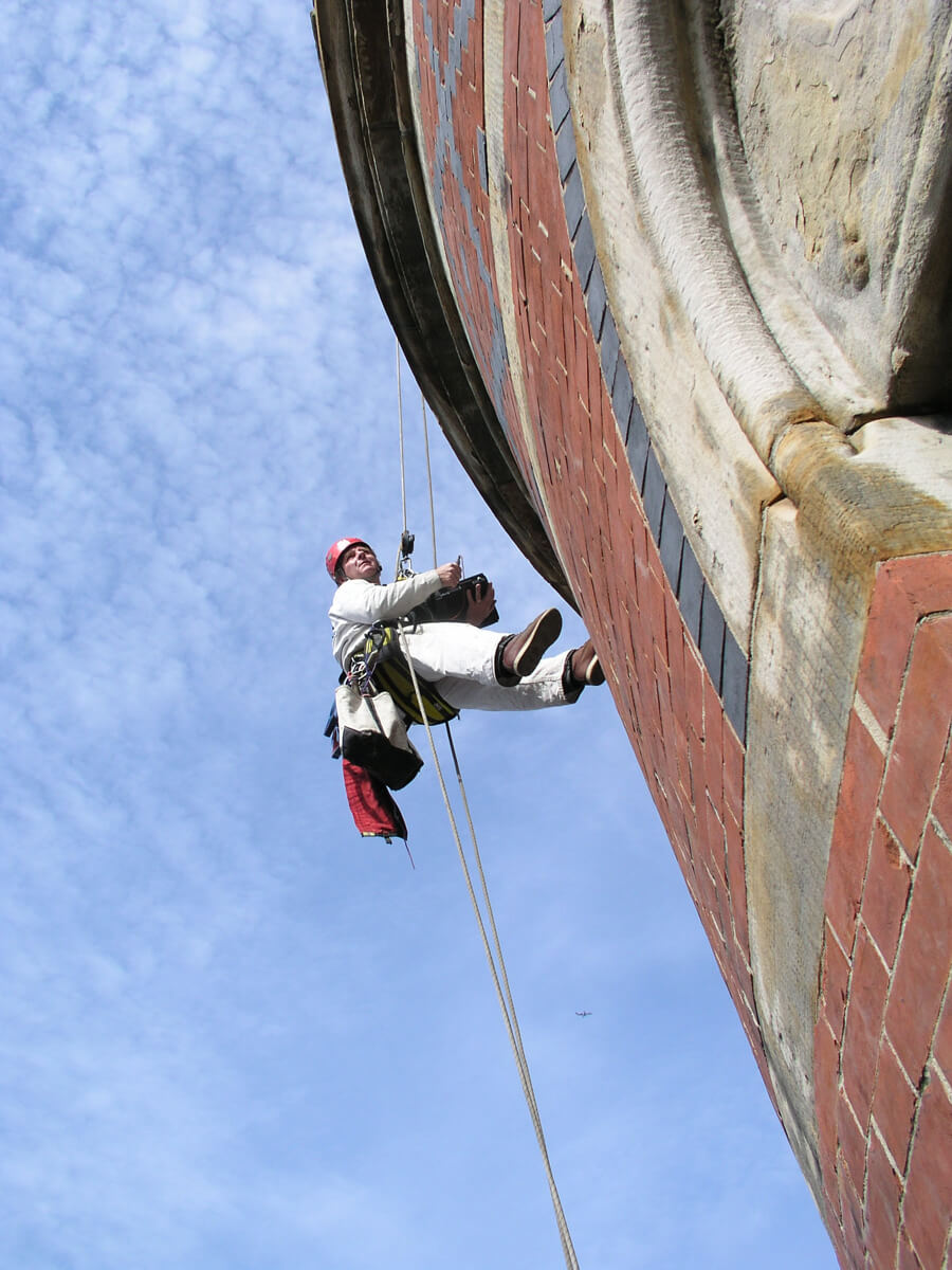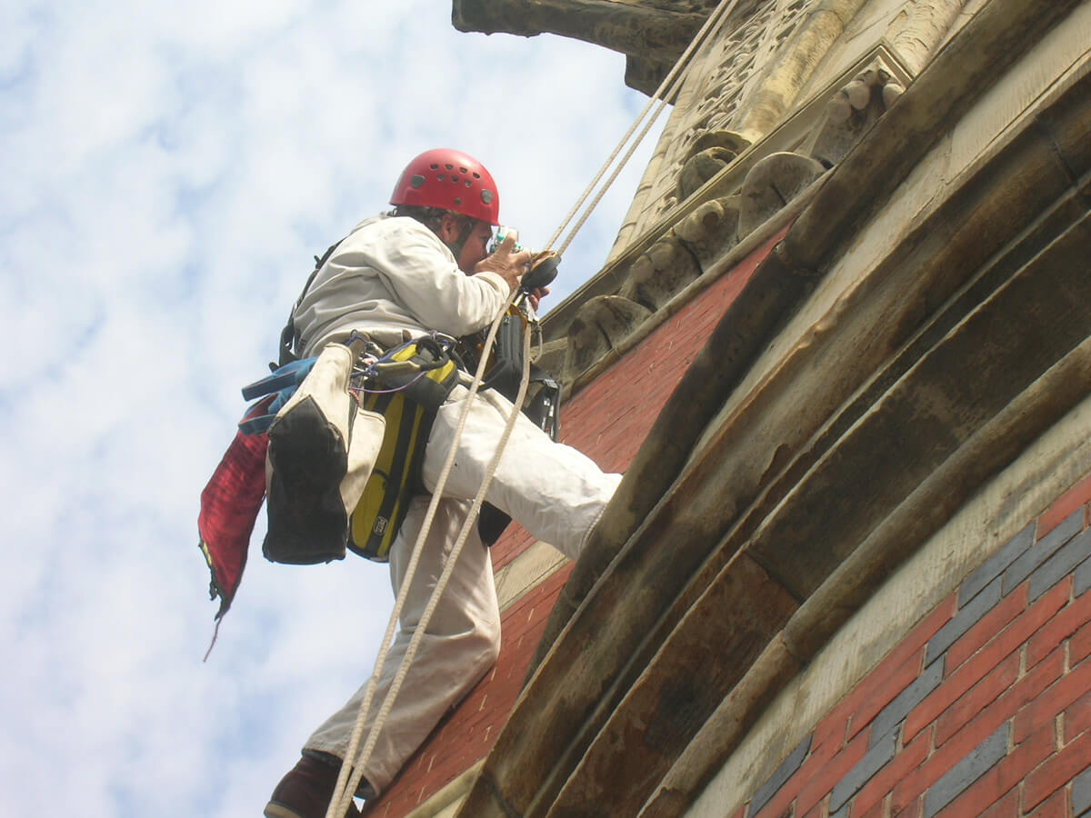 - Performed live-feed video documentation on one side of the tower from the top of the roof to the balcony level and at each of the four gargoyles below the slate roof.