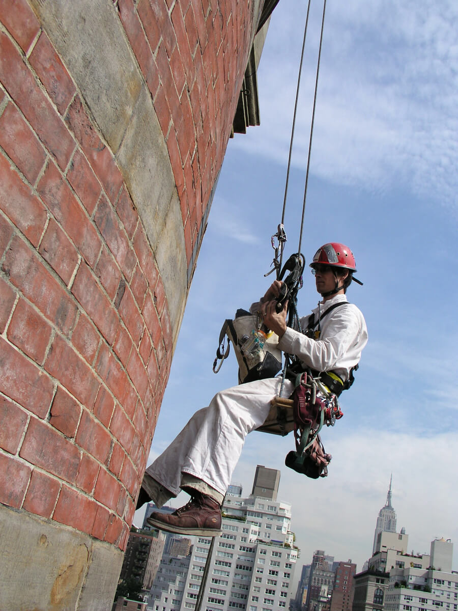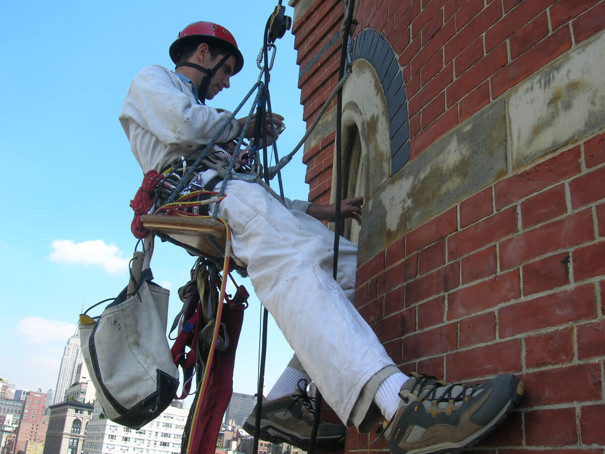 - Documented condition of the exterior masonry and related materials from the balcony level to the top of the tower roof.
