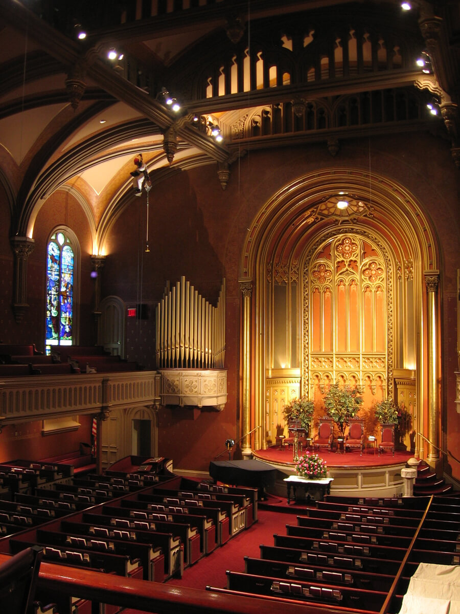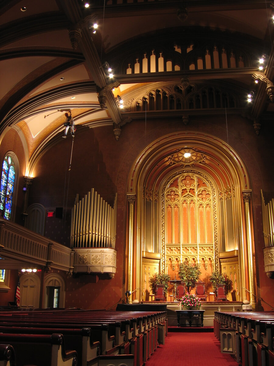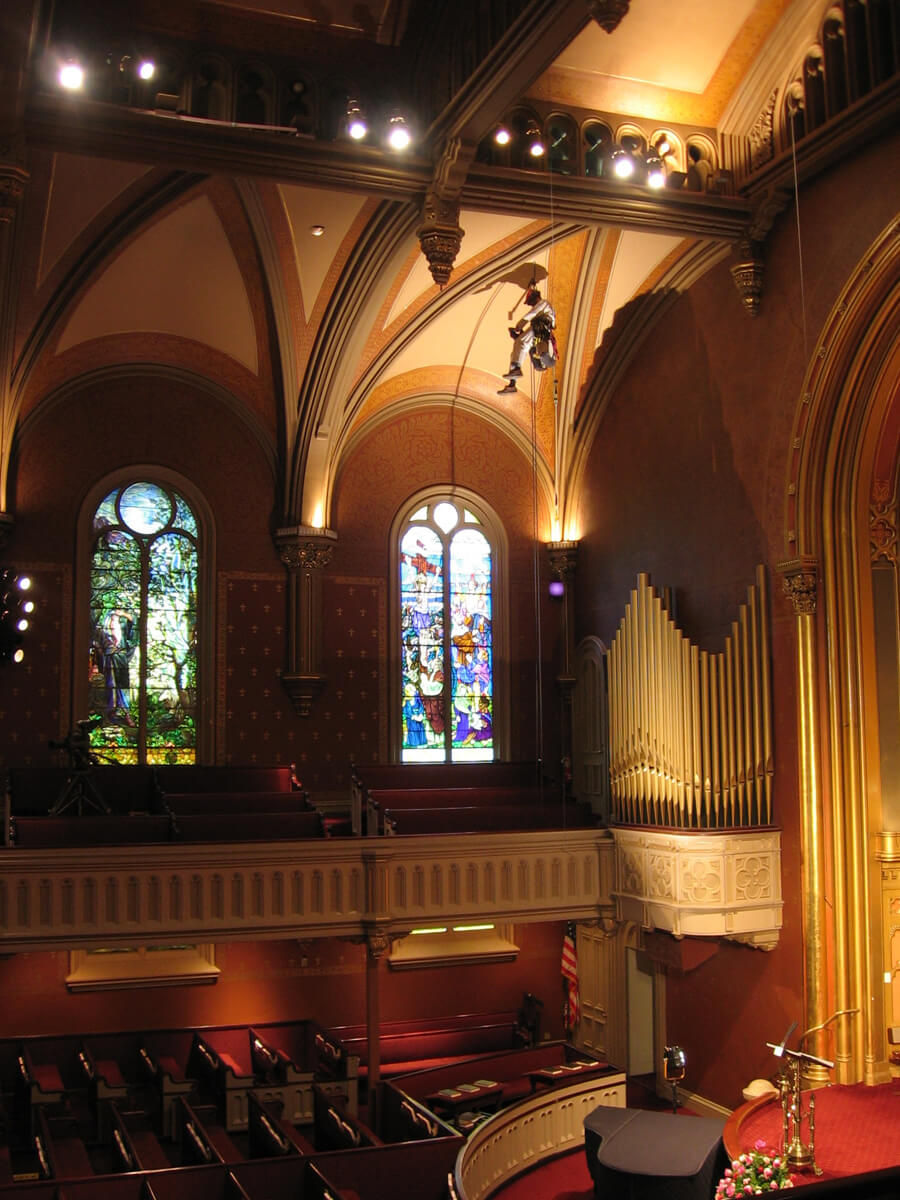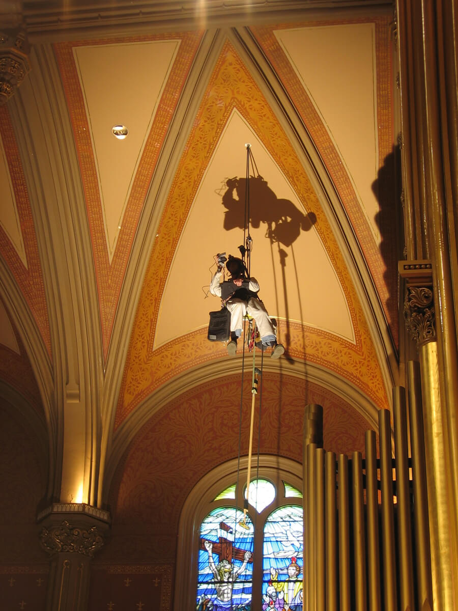 - Inspected and mapped cracks and other conditions at the plaster ceiling of the sanctuary.