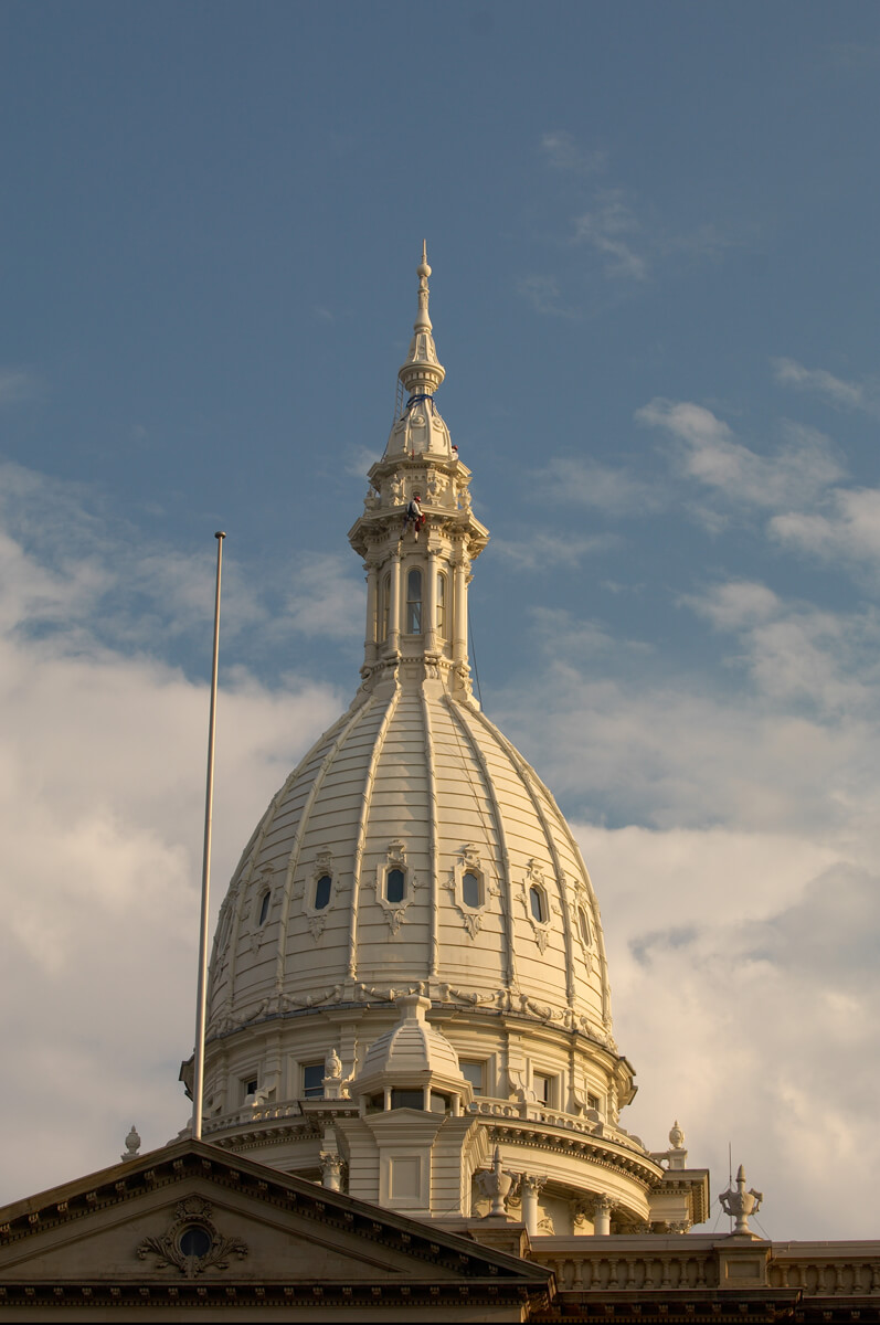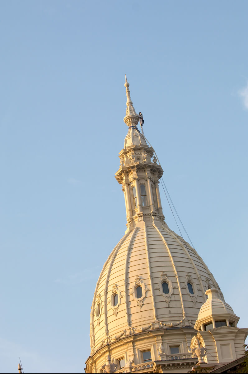 Following a major restoration undertaken between 1989 and 1992, Vertical Access was retained by Quinn Evans Architects in 2005 to investigate the condition of the materials and paint coatings at the cast iron drum and sheet metal dome of the Michigan State Capitol. Nine years later, VA was again asked by Quinn Evans Architects to perform a hands-on inspection of the dome in preparation for an exterior repair project.