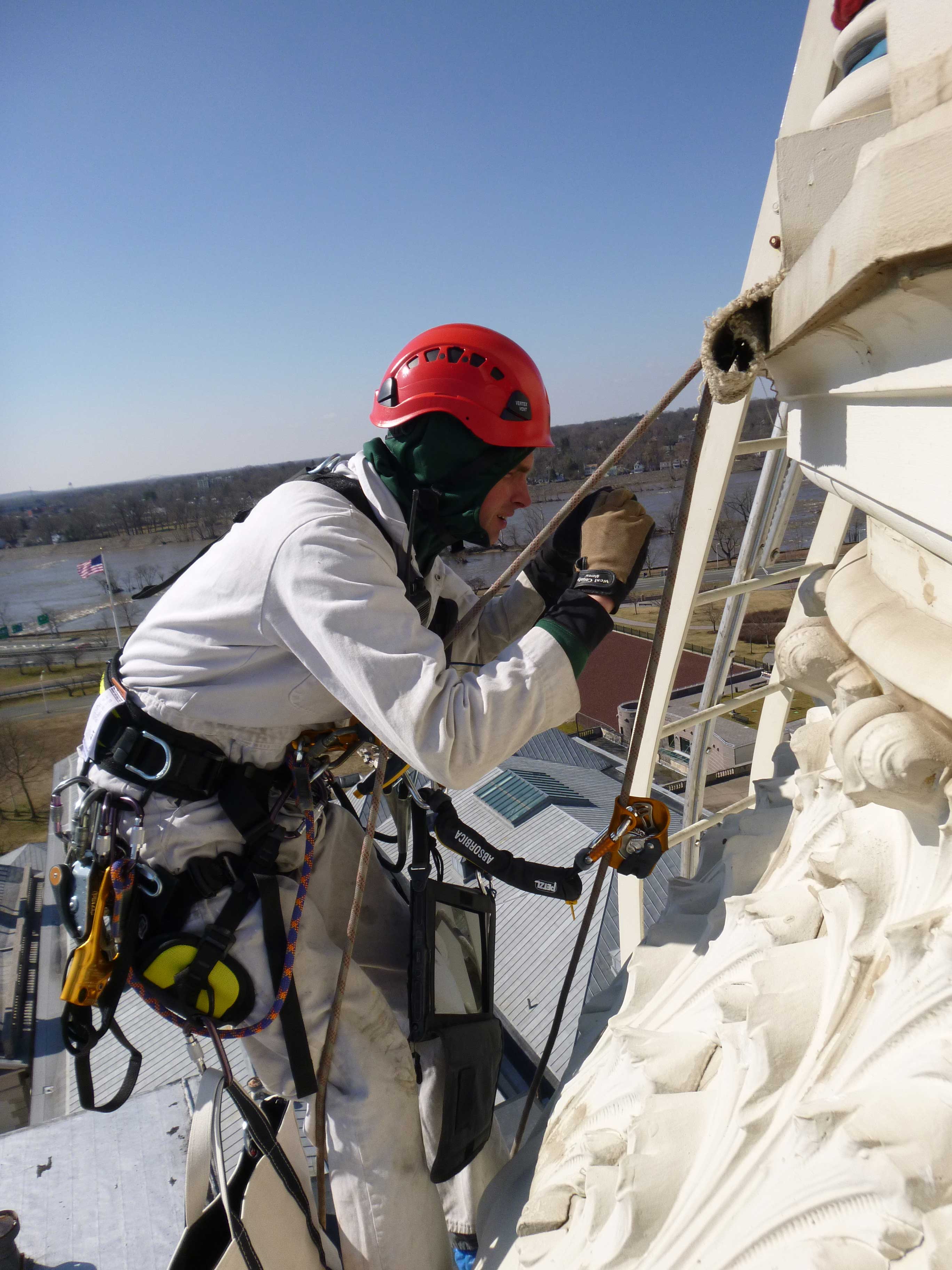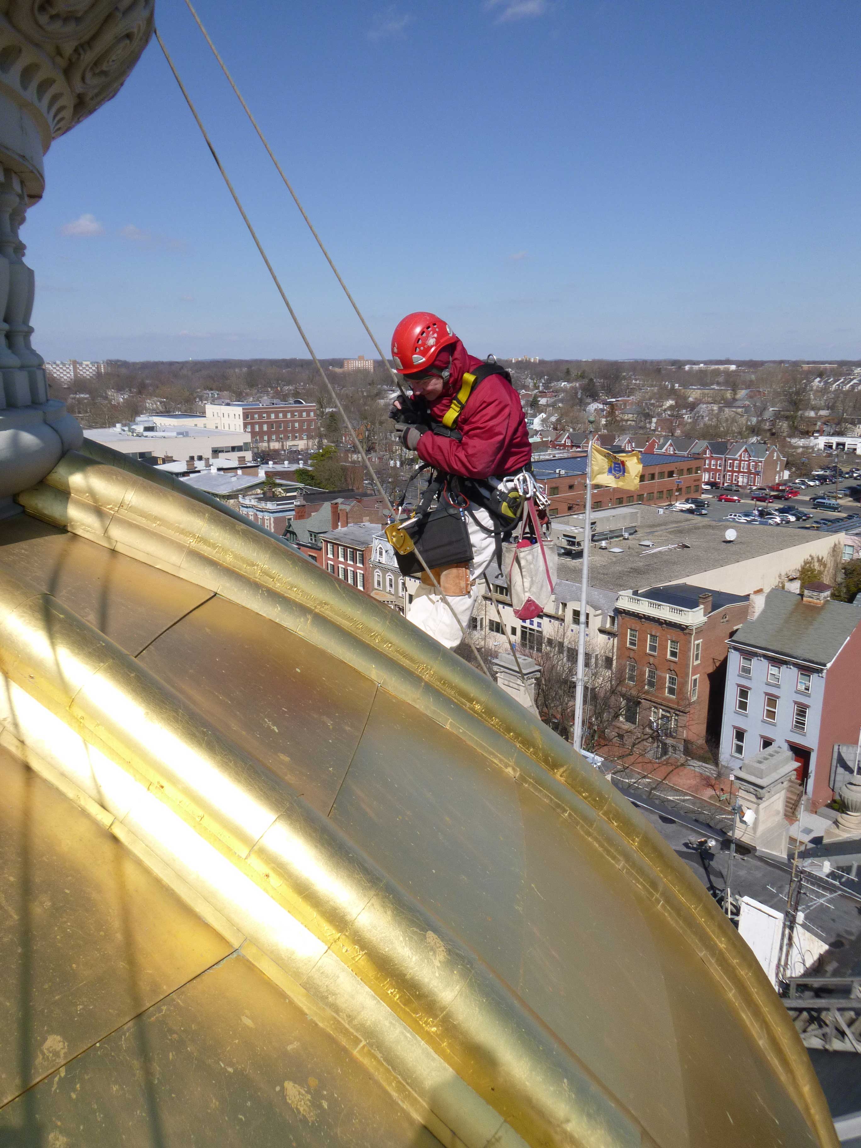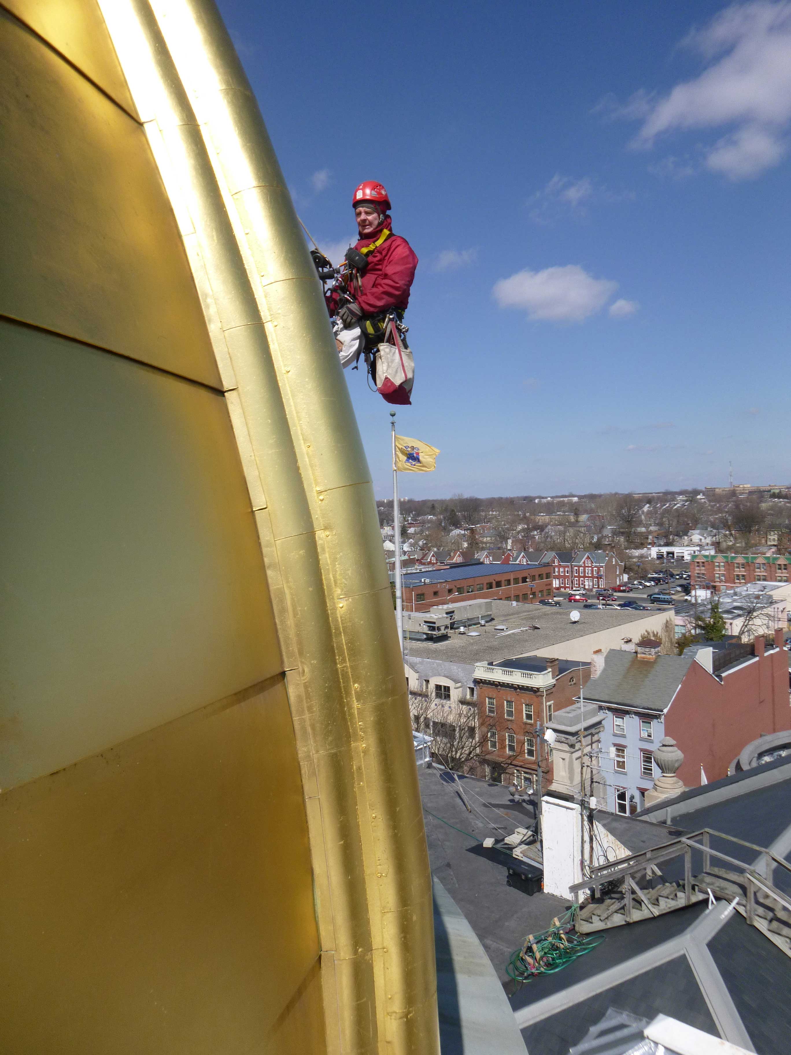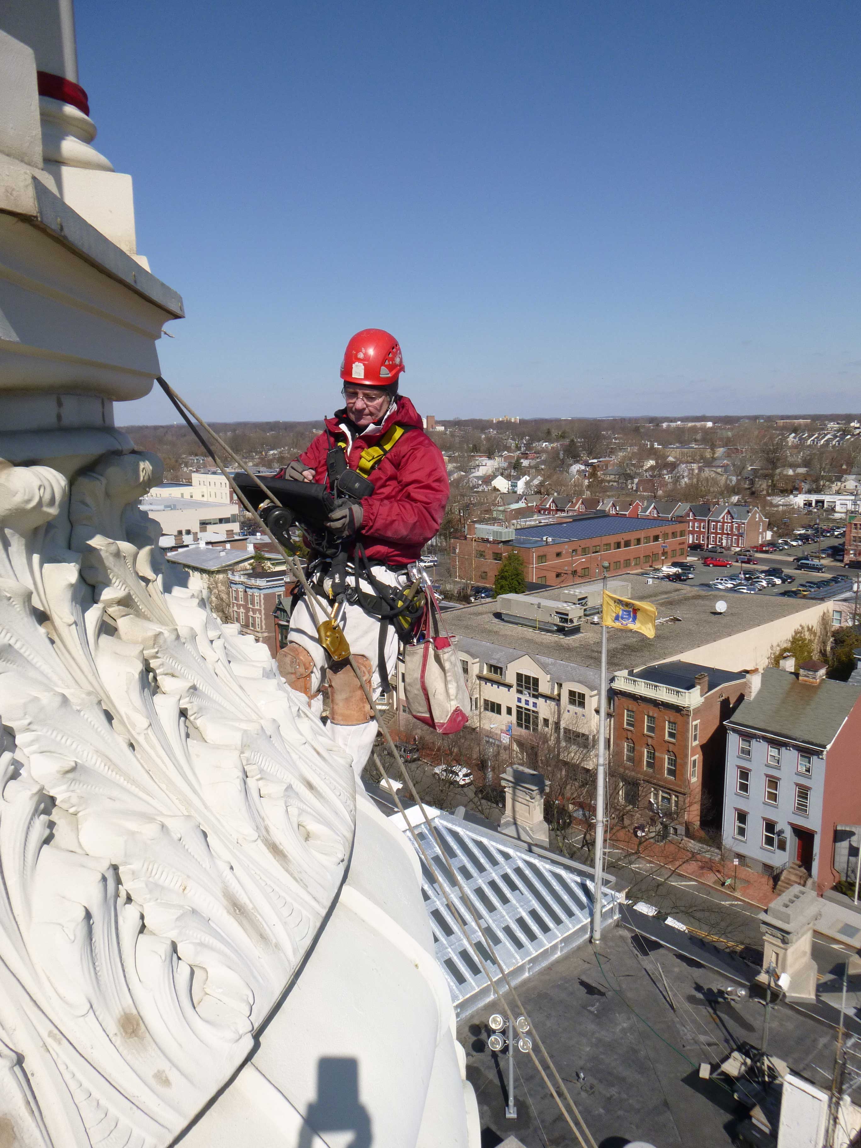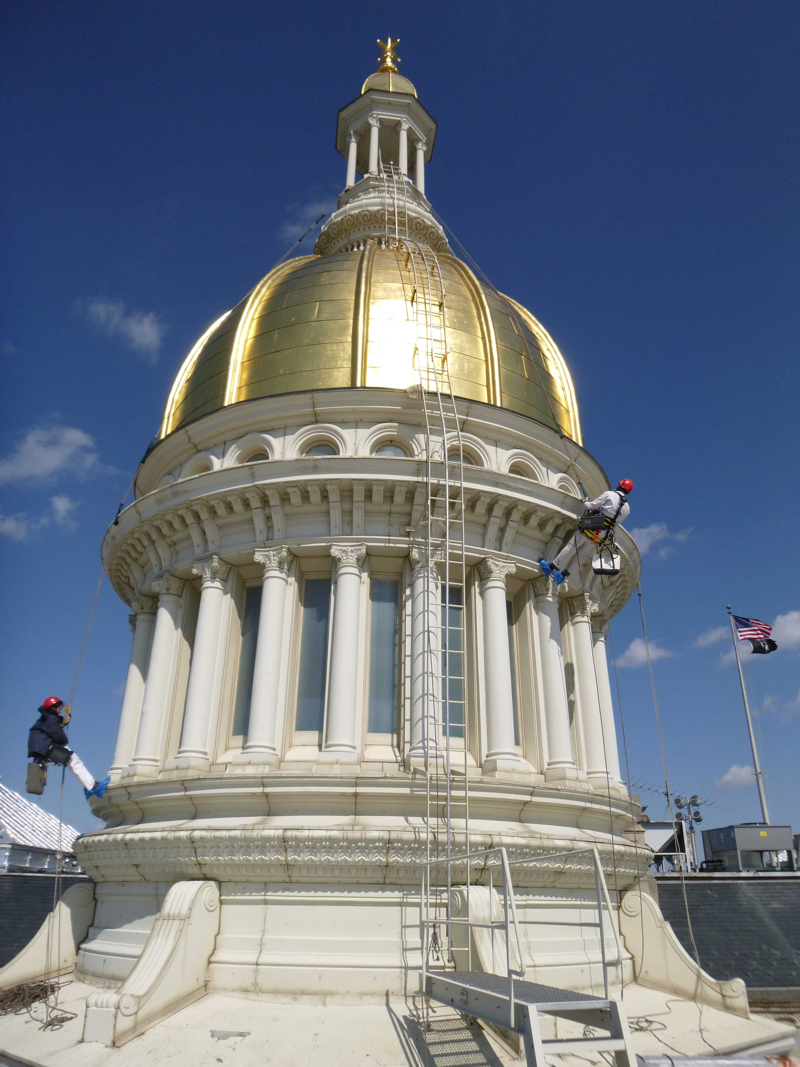 The New Jersey State House has changed many times since its original construction to accommodate a growing state government. The current dome was designed by Lewis Broome in 1889 after a fire had ruined a smaller previous version. A complete restoration, for which Vertical Access coordinated all of the site investigations and safe access, was finished in 1999. The dome is constructed of gilded copper and cast iron supported by steel webbed columns and rises to 145 feet.