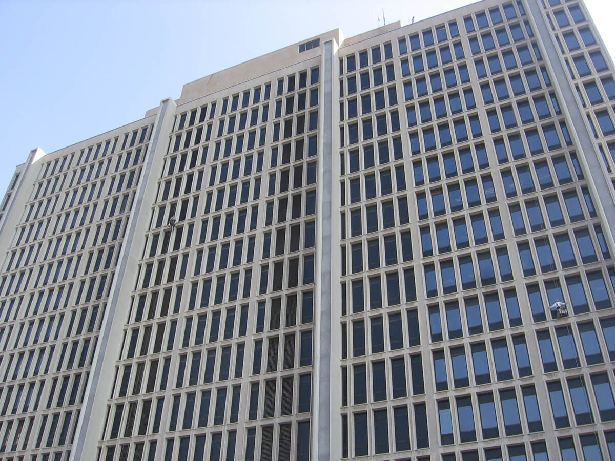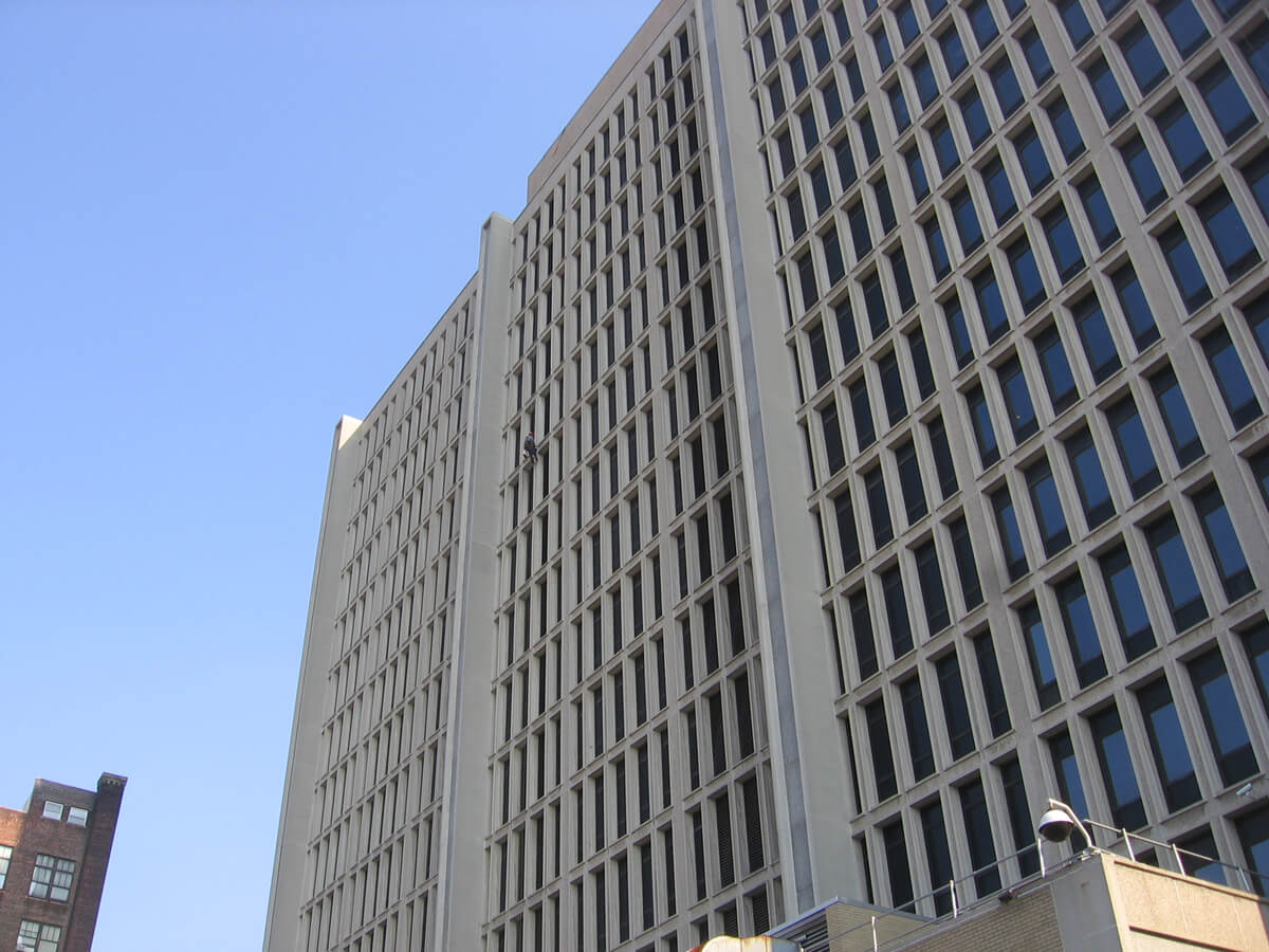 The Peter W. Rodino, Jr. Federal Building in Newark, NJ was designed by Lehman & Biernacki-Poray and completed in 1967. It is a 16-story concrete frame building with pre-cast concrete panels used as cladding from the 3rd floor to the roof parapet on all four façades.