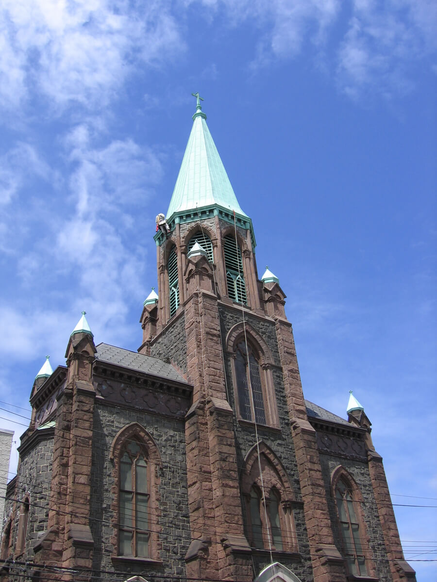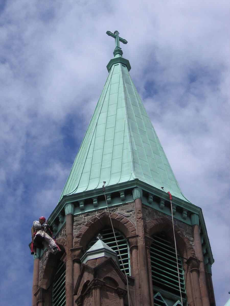 - Designed and installed pre-patinated copper cowls at new access holes at the copper-clad spire.