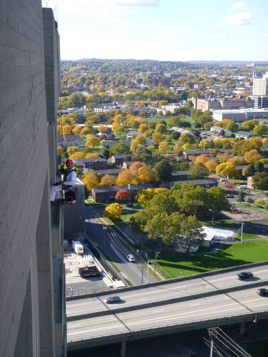 Vertical Access was retained by William Taylor Architects to perform a close visual and hands-on investigation of the four exterior facades of the 24-story tower and the two-story wing that abuts the south side of the tower. The purpose of the investigation was to help the design team prepare repair recommendations.