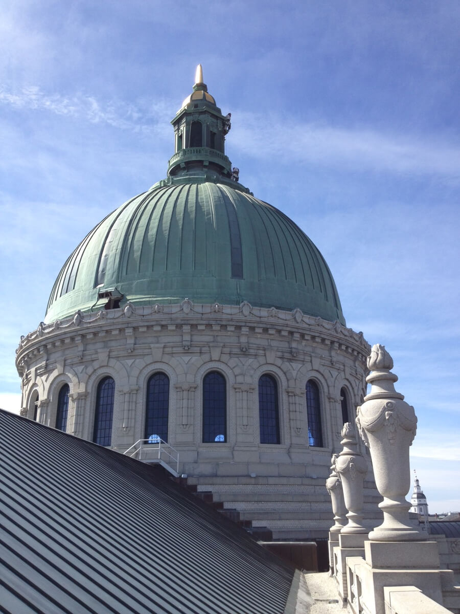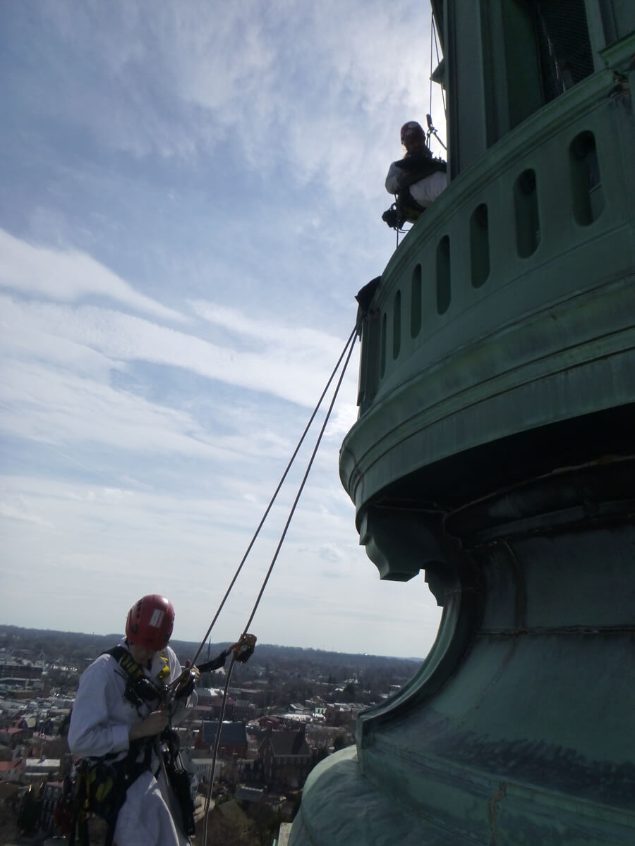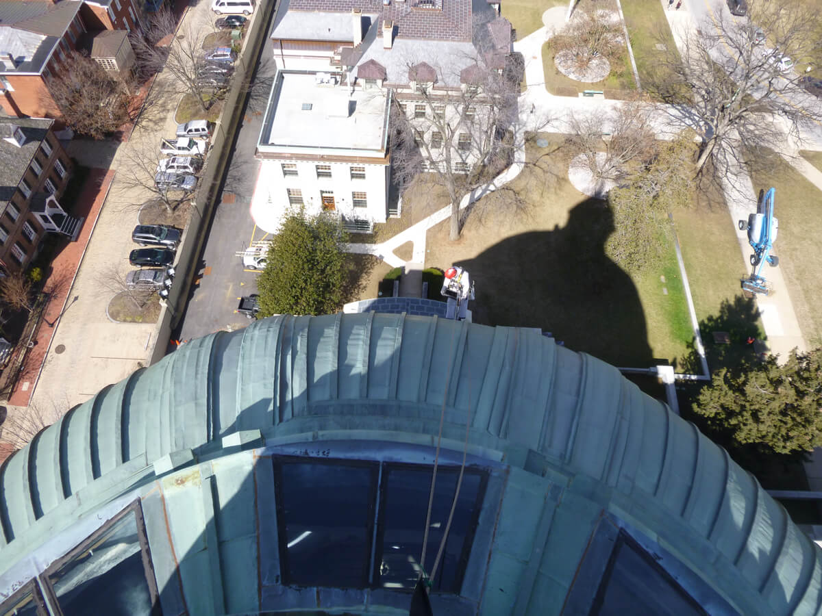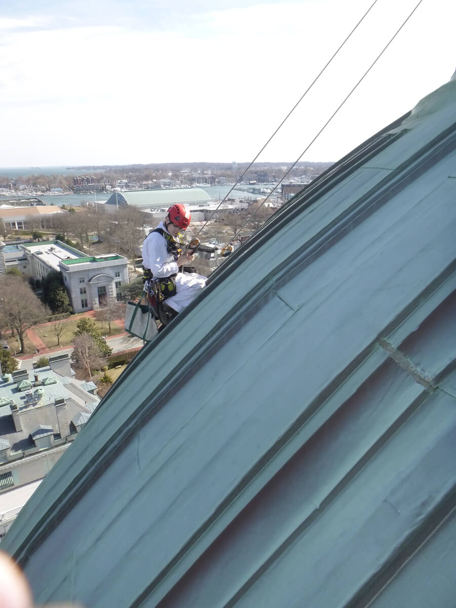 Vertical Access performed a hands-on inspection of the dome of the United States Naval Academy Chapel in Annapolis, Maryland in order to assist the project team with assessing the condition of the sheet copper cladding.