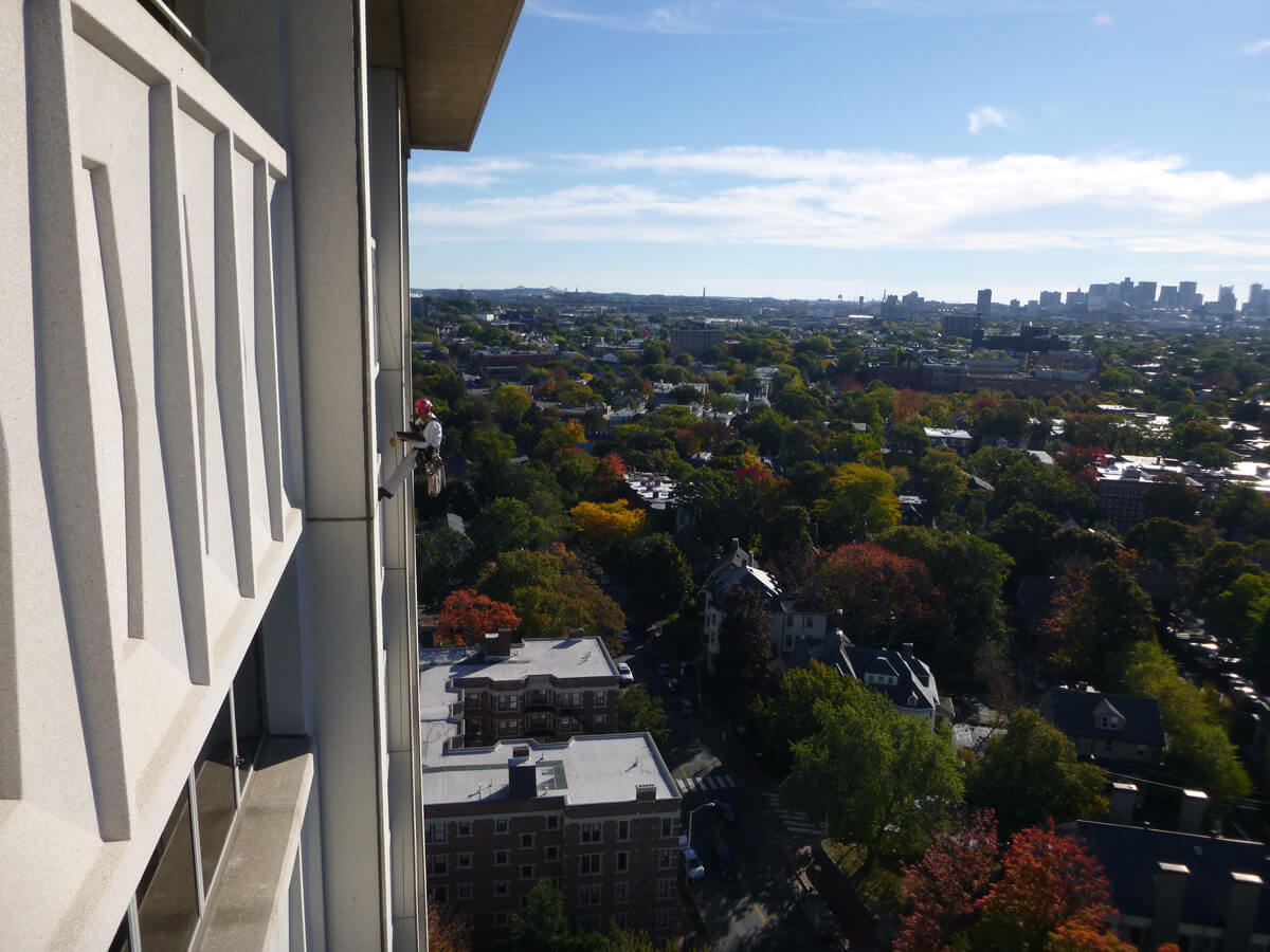 Vertical Access was retained by the Harvard University Office of Physical Resources and Planning to investigate and document existing conditions at the exterior of William James Hall on the Harvard campus in Cambridge, MA. The scope of work for this survey included hands-on inspection and hammer-sounding of the exterior concrete and documentation of existing conditions. VA returned two years later to conduct a periodic inspection of the building’s exterior.